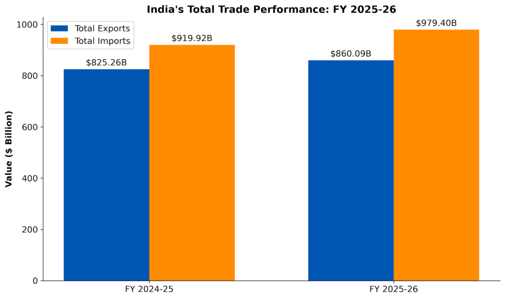 India’s Total Exports Cross $860 Billion in FY 2025-26
